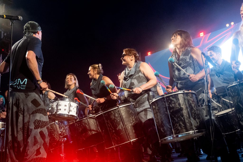 Drum Machine – Bearded Theory Drum Machine were back at Bearded Theory on 24-5-25 and I don’t think I’ve ever seen so many drums in one tent! bearded theory, drum machine, festival