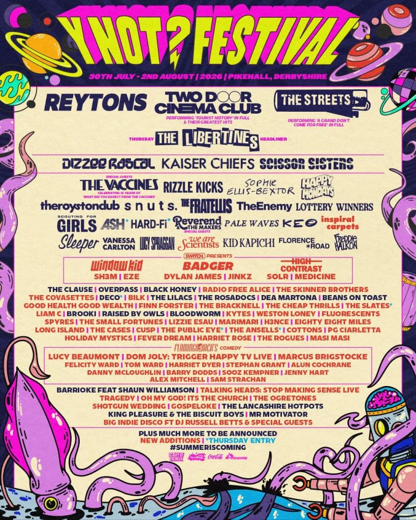 Y Not Festival Announces Huge Headliners for 2026. 30 July to 2 August – Pikehall, Derbyshire. The North’s Indie Festival Returns For Its Nineteenth Year