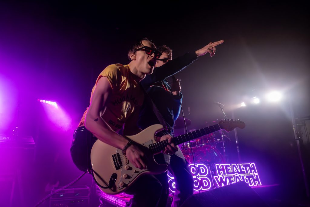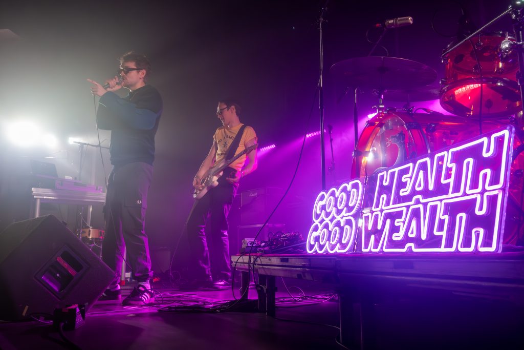 Good Health Good Wealth had a phenomenal breakthrough year last year with the release of their ambitious narrative debut album ‘This Time Next Year We’ll Be Millionaires’. 2026 saw them storm seventeen key festivals, including unforgettable moments at Glastonbury and the main stage at Reading and Leeds, while also earning airplay spanning Radio 1, BBC Introducing, 6 Music and BBC Radio London. ‘This Time Next Year We’ll Be Millionaires’ is an album in which a week-long narrative is a metaphor for a decade of twentysomething life. Each song represents a specific day of the week, zooming in on vocalist Bruce Breakey’s personal struggles whilst navigating life as an artist in London, a city that will eat you alive if you let it. Daily frustrations and set-backs lead to a cocktail of escapism, which soon devolves into hedonism, self-destruction and a bottom-of-the-barrel comedown. But as you’d expect from a darkly witty set that also references Victor Moses, Phil Lynott and The Fonz, this isn’t misery porn. A little parental love sets him back on the right path. By the end he might not have all the answers, but optimism reigns supreme: the future will be better than the past. And while this is Bruce’s story, its tale of break-ups, booze and bouncebacks is relatable across the land.
